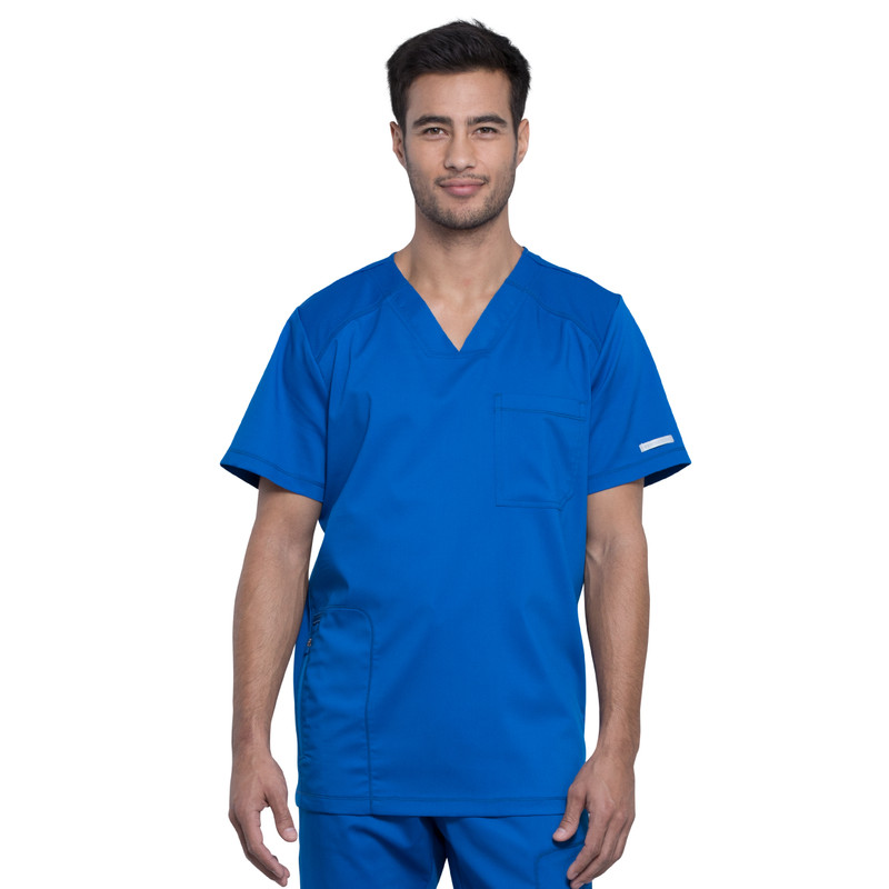 Description Style : WW603 Size : XS-3XL (28 1/2") Material : 78% Poly, 20% Rayon, 2% Spandex Men's fit Chest pocket, Front-zip pocket Mesh yoke and panels Locker loop Instrument loop Reflective label and tape UPC: